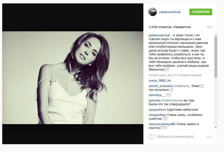 Попрощалась с подругой в соцсетях и бывшая коллега Жанны по «Блестящим» Юлия Ковальчук: